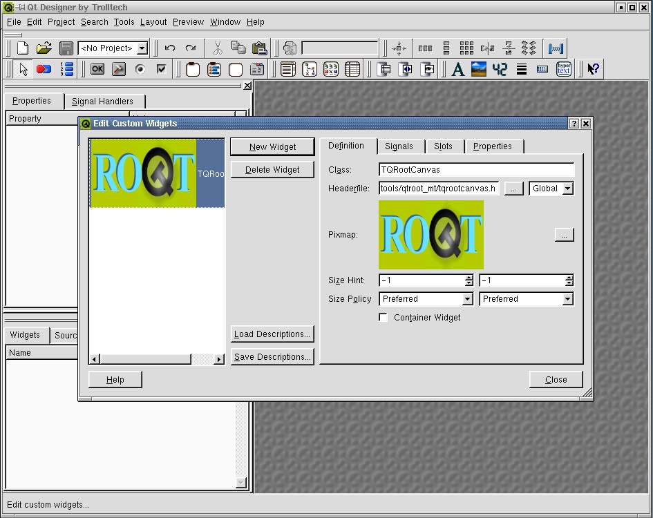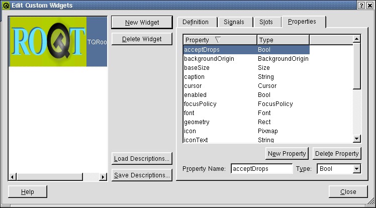 CINT has a new build option to generate the dictionary for the Qt classes. This dictionary is not built by default in the binary distribution files because the resulting library is quite large (>2 Mbytes). You can build it from source via