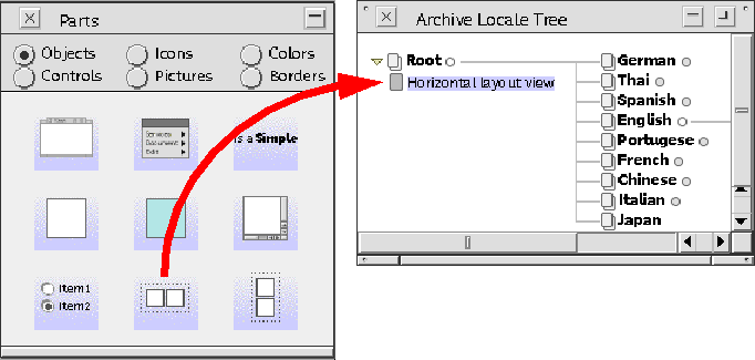 - Drag a horizontal or vertical layout view into the Archive viewer, or into an existing view in its Editor.