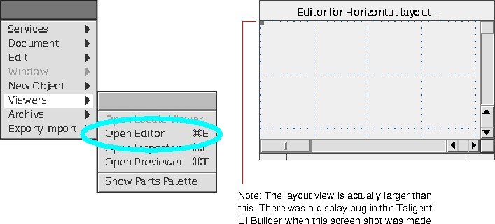 - In your source code, copy the layout view from the Taligent UI Builder archive rather than create the view and its contained items at run time.