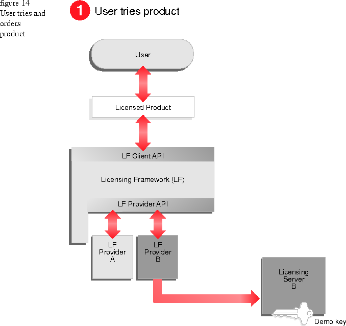 The user provides ordering information to the product vendor, identifying the product to be purchased and an available license provider.