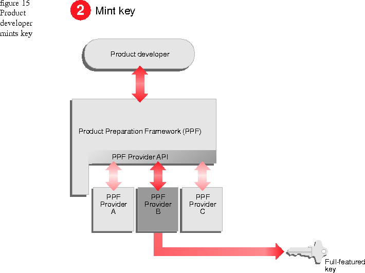 The product developer uses the product and customer data furnished by the customer to mint an encrypted activation key unique to that customer, as shown in Figure 15. The key can be used only by the customer for whom it was minted.