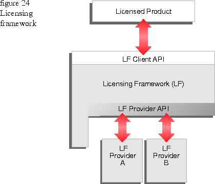This chapter describes how a license provider uses the provider API of the Licensing framework to interact with the CommonPoint application system, as shown in Figure 24. Developers interested in becoming providers of licensing technology to be plugged into the Licensing framework must call this API. This chapter covers the following topics:
