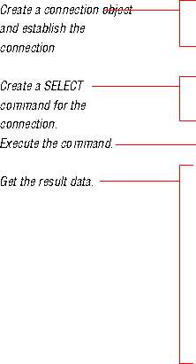 dbc.LogonStep(1, TSQLLogonStep( TStandardText("t:129.213.80.90:SAMP"), TStandardText("auser"), TStandardText("apassword"))); TSQLCommandHandle selectCmd = dbc.CreateSQLCommand(TStandardText( "SELECT EMPNO, PROJECTNAME FROM Project")); selectCmd.Execute(); TRecordSourceHandle recSrc = selectCmd.GetRecordSource(); cout << "EMPNO" << "," << "PROJECTNAME" << endl; while (recSrc.FetchRecord()) { long empNo; TStandardText projName; Boolean avail; avail = recSrc.GetField(empNo, 1); avail = recSrc.GetField(projName, 2); cout << empNo << "," << projName << endl; } }