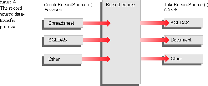 The Record Source framework is a data transfer protocol that supports the transfer of records between objects acting as data sources and objects that can absorb record sources. Source objects and sink objects are isolated by the Record Source framework and require no communication with each other besides that supported by the framework itself.