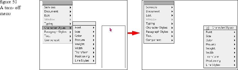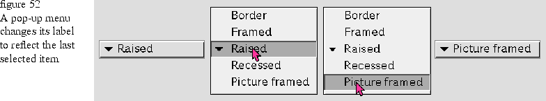 When the user selects a pop-up menu item, the pop-up menu copies the label from the pop-up menu item so that the pop-up menu always indicates the last pop-up menu item that the user selected. Figure 52 Pop-up menus