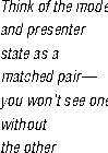 While you may find that this functional separation has real benefits in more complex systems, you still need a convenient way to address the model along with the presenter state data. This paired addressing is desirable because you want to avoid changing the state of one without notifying the other.