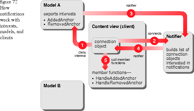 Figure 72 shows the information flow between clients, models, and the notifier object: