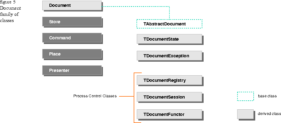 Three classes (TDocument, TDocumentState, TDocumentPresenter) provide the structure defining a basic document. TAbstractDocument defines the interface that the TDocumentSurrogate class inherits.