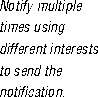 MNotifier::Notify defines protocol for sending a notification using an interest that differs from the one the notification owns. The same notification instance can be used more than once as long as it can be cast to the class the sender has defined for each interest used to send the notification.