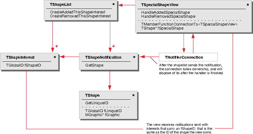 When SetSpecialShape changes the shape that the view is interested in, the view informs the connection. First it removes any interests for the old shape, then adds the appropriate interests for the new shape.