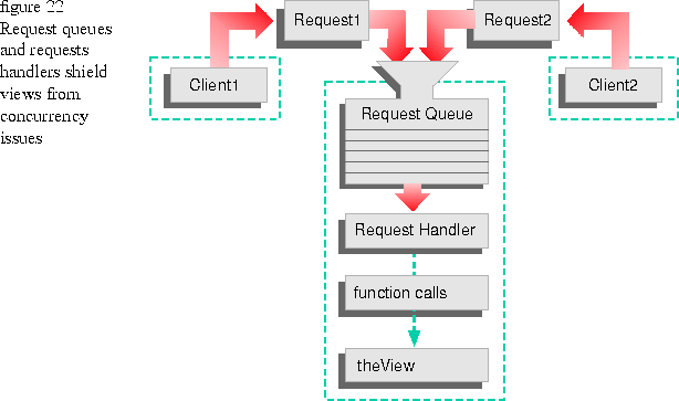 The request queue mechanism is necessary to serialize member function calls that originate from outside the view's thread of execution. Clients that share the same thread as the view can call the view's member functions directly.