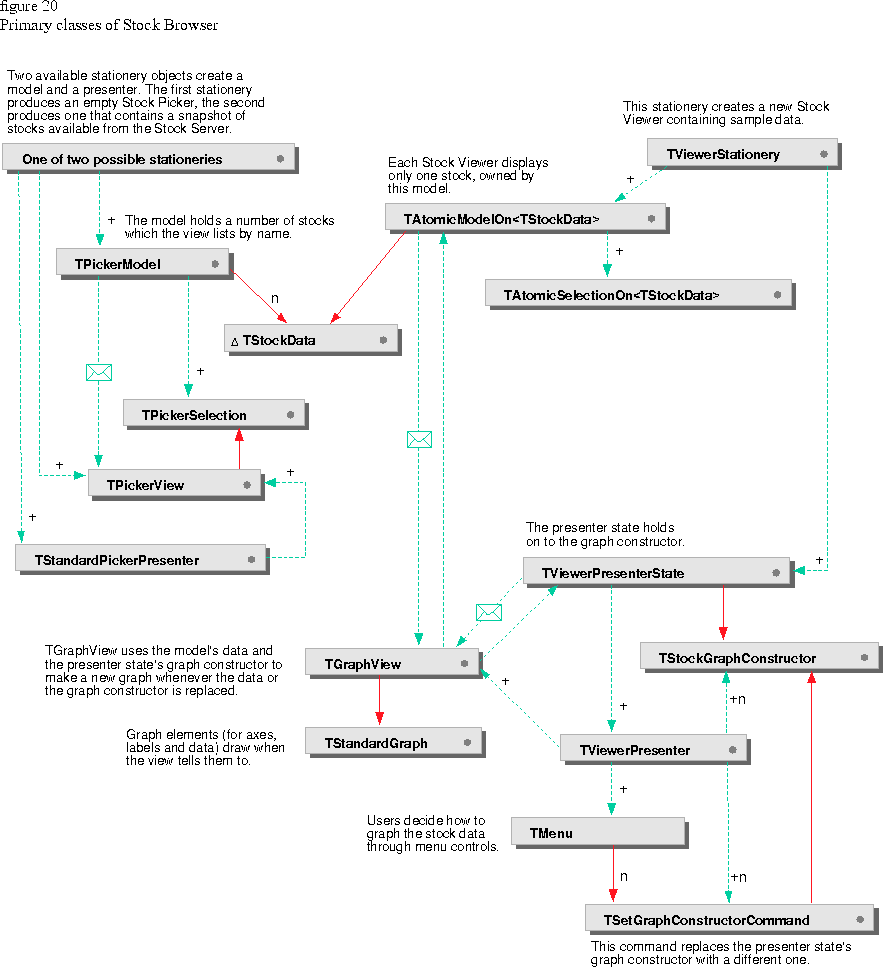 The Desktop frameworks offer a number of frameworks from which to start building a program. Stock Browser specifically uses the Presentation framework for the Stock Picker and the Stock Viewer because it is the framework for building programs that comply with the CommonPoint human interface guidelines for graphical user interfaces.
