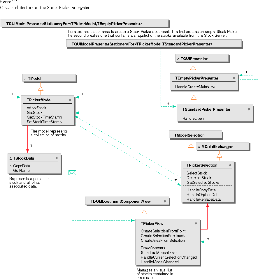 Opening a TGUIModelPresenterStationeryFor<TPickerModel, TEmptyPickerPresenter> produces an empty picker document. This can be used to collect the user's favorite stocks or just the stocks she owns. Opening a TGUIModelPresenterStationeryFor<TPickerModel, TStandardPickerPresenter> object produces a document containing a snapshot of the stocks available from the Stock Server.