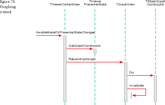 Each TView::Invalidate member function call causes the appropriate view to be redrawn by the View system. TViewerContentView draws the name of the stock and TGraphView draws the graph.