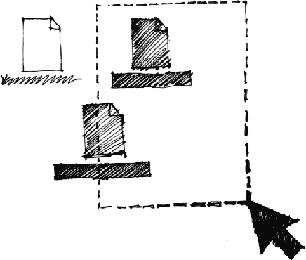 Select an object by clicking on it with a pointer. Change a selection of objects. Select a range of objects by dragging through them. Drag a selected object. |