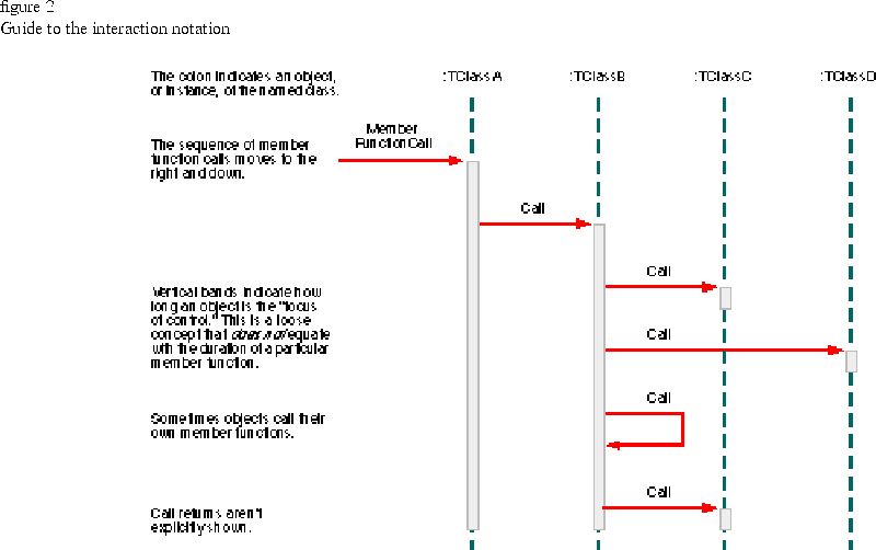 that support program functionality. Objects and member function calls are shown selectively, concentrating on key interactions. Interaction diagrams are not definitive.
