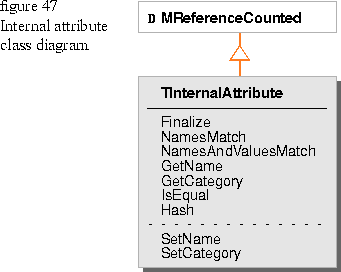 TInternalAttribute is not synchronized and thus is not multi-thread safe. Do not declare it static. Figure 47 shows the public and protected member functions for TInternalAttribute.