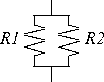 Two parallel resistors R1 and R2 have net resistance R given by the expression