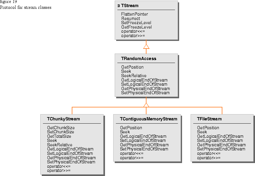 If you want to stream data to a disk file, use an instance of TFileStream. Instead of being associated with virtual memory, a TFileStream object is associated with an instance of TFile as specified in the constructors for TFileStream. Other than this, the protocol for memory streams is identical to file streams. Most importantly, because of the common protocol shared by memory streams and file streams, you can switch between types of streams later if you decide a different type of stream is more appropriate for your application.