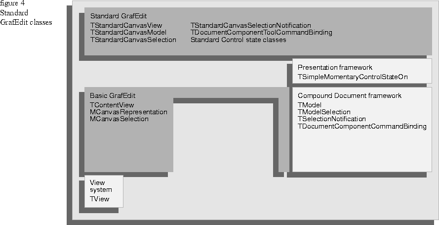 Figure 4 shows Standard GrafEdit, and their related Basic GrafEdit, Compound Document framework, and View system classes.