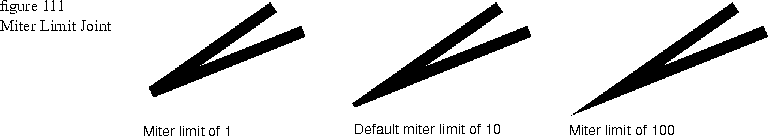 1 TMiterLimitJoint* miter1Joint = new TMiterLimitJoint( 1.0 ); 2 polyBundle->AdoptFrameJoint( miter1Joint ); 3 aMiterPolyline->Draw( thePort ); 4 5 TMiterLimitJoint* miterDefaultJoint = new TMiterLimitJoint(); 6 polyBundle->AdoptFrameJoint( miterDefaultJoint ); 7 aMiterPolyline->Draw( thePort ); 8 9 TMiterLimitJoint* miter100Joint = new TMiterLimitJoint( 100.0 ); 10 polyBundle->AdoptFrameJoint( miter100Joint ); 11 aMiterPolyline->Draw( thePort );