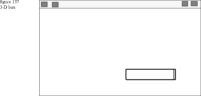 This DrawContents implementation draws the 3-D wire frame box with a frame that is 2 worldcoordinate units wide shown in Figure 137. TGBox3D has no corresponding MGraphic3D derived class, but can be sent to the drawing port for fast rendering of rectilinear wire frames.