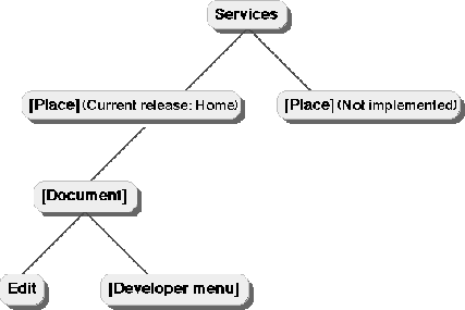 To minimize context-based menu flicker, the ordering of menus should be stable wherever possible. The Services, Document, and Edit menus are likely to be available in most contexts, so their order should remain constant. By placing new menus the Edit menu, the user has only to check one location for new menus.