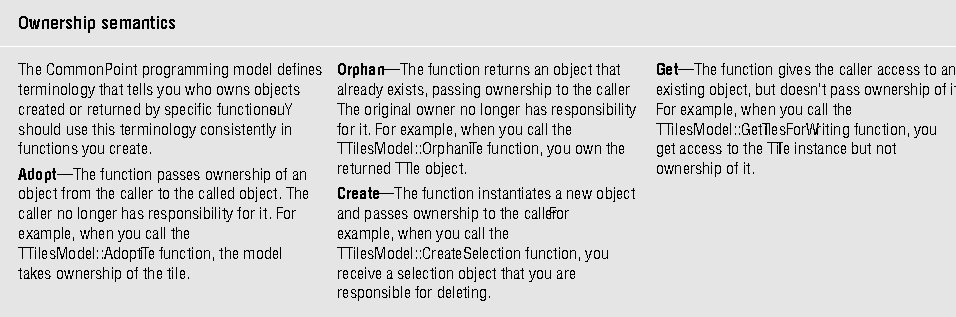 To provide flexibility, it makes sense to allow the array to contain an arbitrary number of TTile instances. TTilesModel has two functions, AdoptTile and OrphanTile, that add a tile to or remove a tile from the model's array. In the first stage of developing this model, however, the number of tiles in the array is defined in the default constructor and is fixed at three. In a later step you'll see how to add the ability for the user to control the number of tiles in the array. (See "Ownership semantics TaligentTypeExtension