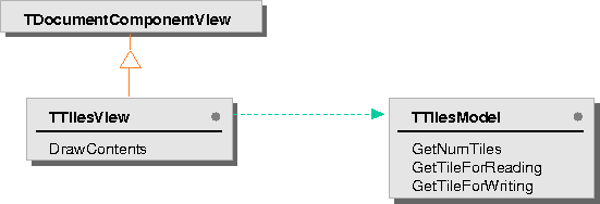 TTilesView inherits from TDocumentComponentView, the standard view class provided by the Presentation framework. TDocumentComponentView builds on the functionality provided by TContentView, one of the primary view classes provided by the Desktop frameworks.