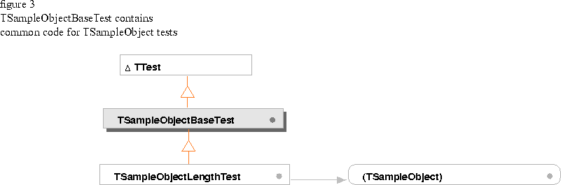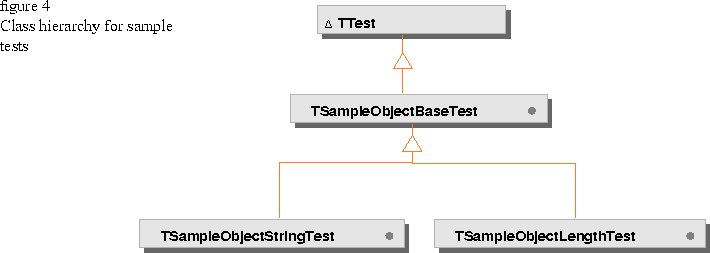Figure 4 shows the class hierarchy for the TSampleObject test classes. In addition to creating an organized structure for your tests, you can use a simple naming convention to clarify which test classes relate to the classes you are testing. For example, the test class for TSampleObject that tests the string functions is called TSampleObjectStringTest. The test class for the MaxLength member functions is TSampleObjectLengthTest.