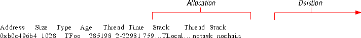 | Allocation stack crawl | Function that allocated this block. | |