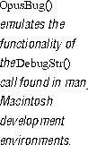 --a UNIX program script--which runs a debugger to attach to your running process. While it is fairly limited because the UNIX environment is very different from other development environments, OpusBug()