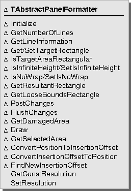 Following are brief descriptions of the TAbstractPanelFormatter abstract member functions. For complete descriptions, see the online class and member function documentation.
