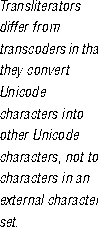 The following classes implement transliterators: