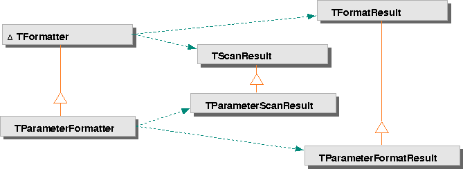 Formatting and scanning operations always return information about the operation in a TFormatResult or TScanResult instance. The result contains information about the accuracy of the operation. The scan result indicates, additionally, the number of characters within the input text that were actually read during the scanning. TParameterFormatter returns a list of indexed format or scan results corresponding to the list of parameters.