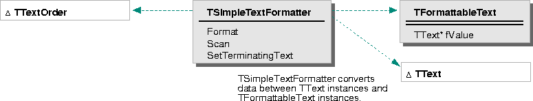 TFormattableText stores a text string as an instance of TText. TFormattableText provides constructors for passing the text string in as either a TText reference or a character string (char*). You can also set the text string with the SetText member function.