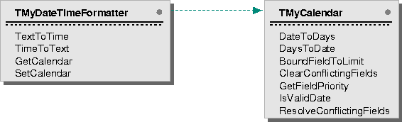 However, these functions perform conversions based on a specific calendar. You must override the functions that set and return the calendar used by your formatter. GetCalendar is called by the Format and Scan functions to retrieve the calendar data member, which is then passed to the TimeToText or TextToTime function. The calendar data member for each formatter is initialized by the constructor, but it can also be set or reset using the SetCalendar function.