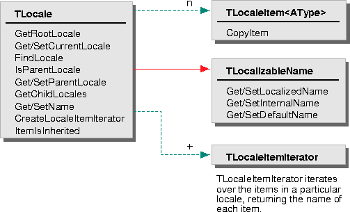 The locale classes also use the class TLocaleException, derived from TStandardException, to issue exceptions. TLocaleException defines two exception conditions--kInvalidLocale, issued when a caller tries to access an invalid locale, and the default condition kDefaultReason.