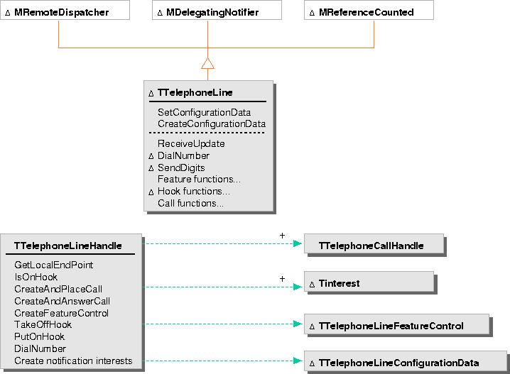 TTelephoneLineConfigurationData uniquely specifies the telephone line to use. TTelephoneLineHandle provides member functions for initiating telephone call connections, determining the hook status of the line, and accessing telephone feature types.