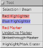 The default menus provided by the Text Editing framework include a Tool menu with several text cursor tools: