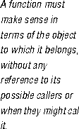 Do not use virtual functions to trap calls and then take an action based on where the calls came from. Such traps are often used to handle erroneous conditions in the caller. These mechanisms wreak havoc with the data abstractions and ruin one of the major benefits of object-oriented programming. If you override a function, the override must make sense in terms of the definition of the function itself and that of its class.