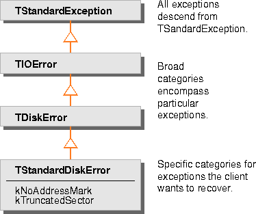 would be over possibilities like kSectorMarkMissing and kTruncatedSector.) In fact, TStandardException contains a handy integer that is intended for that purpose, and the default message formatting code uses it to select the right text. This way the end user is told precisely what the problem is. When to subclass