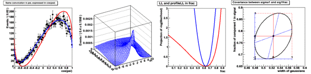 The picture below shows a 2-D visualization of the M(x,y) and the projection on the x observable (i.e. Int M(x,y) dy)) overlaid on the x distribution of the data