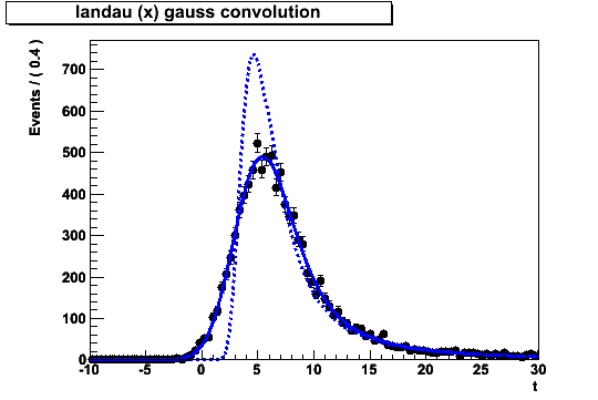 RooFFTConvPdf lxg("lxg", "landau (X) gauss", *t, *landau, *gauss);