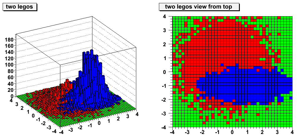 THStack allows to combined 2D histograms. Gallerie: Visualisation techniques and basic graphics Screenshot