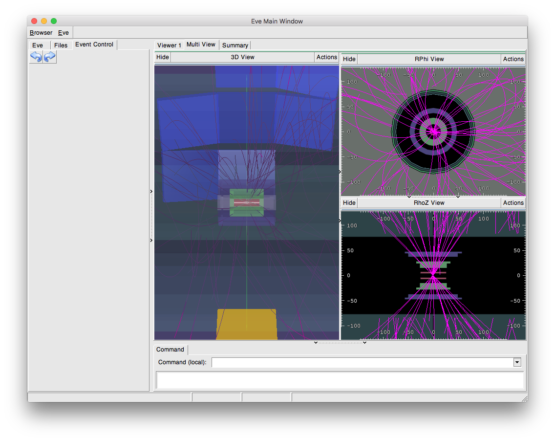 Most common use of the event-display is to browse through a collection of events. Thus a simple GUI allowing this is created in the function make_gui().