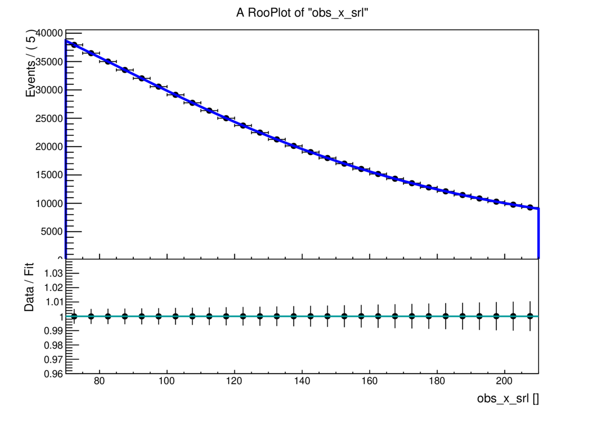 precision:precision < 0.: None of the PDFs are touched, bin sampling is off.precision = 0.: Continuous PDFs that are fit to a RooDataHist are wrapped into a RooBinSamplingPdf. The target precision forwarded to the integrator is 1.E-4 (the default argument of the constructor).precision > 0.: All continuous PDFs are automatically wrapped into a RooBinSamplingPdf, regardless of what data they are fit to (see next paragraph). The same ‘'precision’` is used for all integrators.Some frameworks use unbinned data (RooDataSet) to simulate binned datasets. By adding one entry for each bin centre with the appropriate weight, one can achieve the same result as fitting with RooDataHist. In this case, however, RooFit cannot auto-detect that a binned fit is running, and that an integration over the bin is desired (note that there are no bins to integrate over in this kind of dataset).