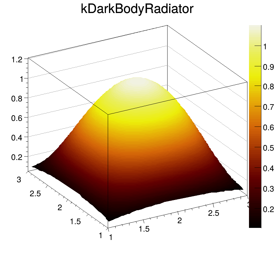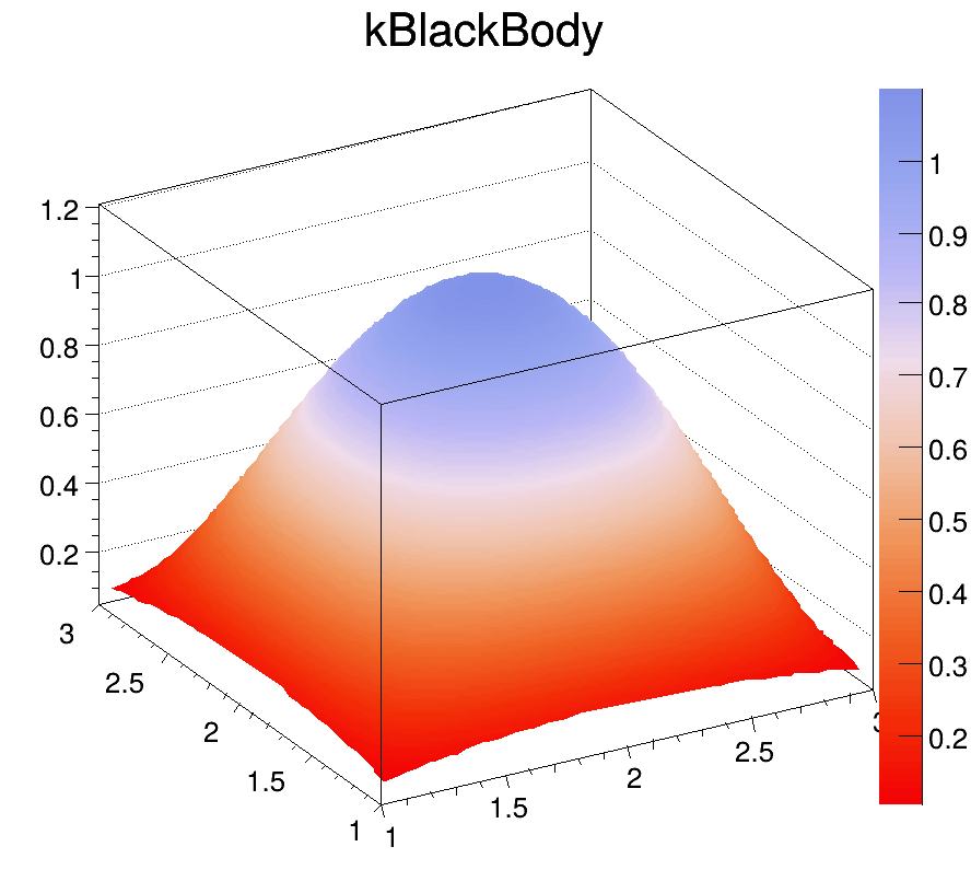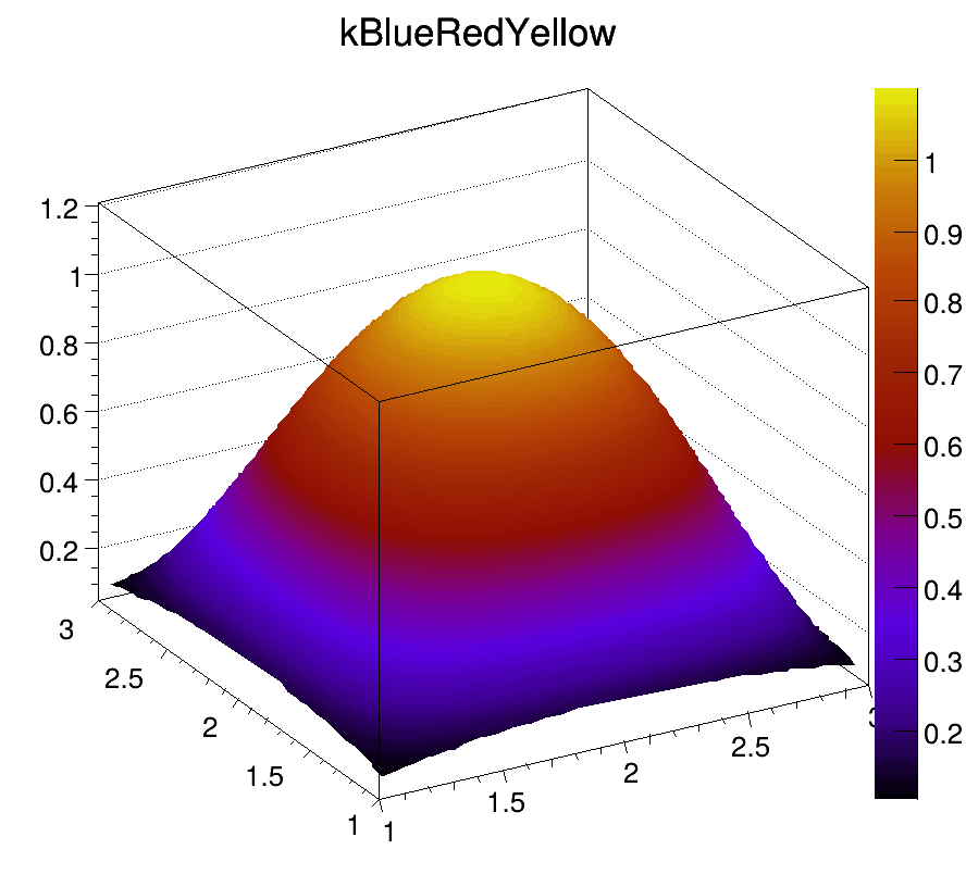 Each color chip is identified by a mnemonic (e.g. kYellow) and a number. The keywords, kRed, kBlue, kYellow, kPink, etc are defined in the header file Rtypes.h that is included in all ROOT other header files. It is better to use these keywords in user code instead of hardcoded color numbers, e.g.: