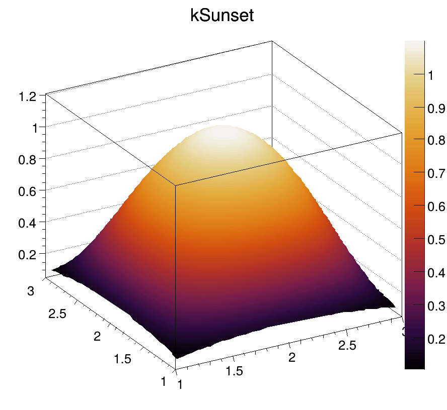 To define more a complex palette with a continuous gradient of color, one should use the static function TColor::CreateGradientColorTable(). The following example demonstrates how to proceed: