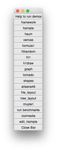 The user can choose between buttons and drawn buttons (let's say icons) and assign to them their own actions (let's say ROOT or C++ commands).